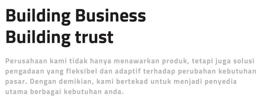 Kami hadir sebagai mitra strategis yang siap memenuhi kebutuhan anda dengan produk berkualitas tinggi dan layanan profesional.